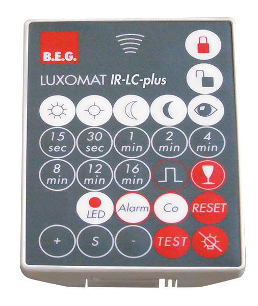 Med infrarød-fjernbetjeningen LUXOMAT IR-LC PLUS 280 kan alle indstillinger udføres bekvemt fra jorden, uden besværlig opstilling af stiger. Den er egnet til bevægelsessensorerne: LUXOMAT LC-plus 280.