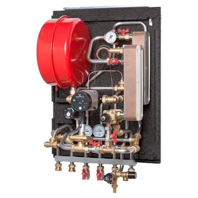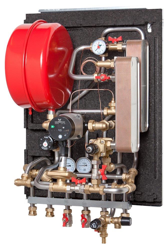 Komplet og monteringsklar fjernvarmeunit til indirekte forsyning med indbygget vandvarmer og varmeveksler. Ideel til installationer hvor radiatorer ikke tåler direkte fjernvarme.