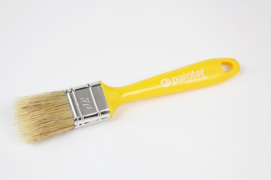 Roliba fladpensel med plastskaft, ideel til præcist malerarbejde. Måler 30 x 14 mm, hvilket sikrer god dækning og kontrol under påføring.