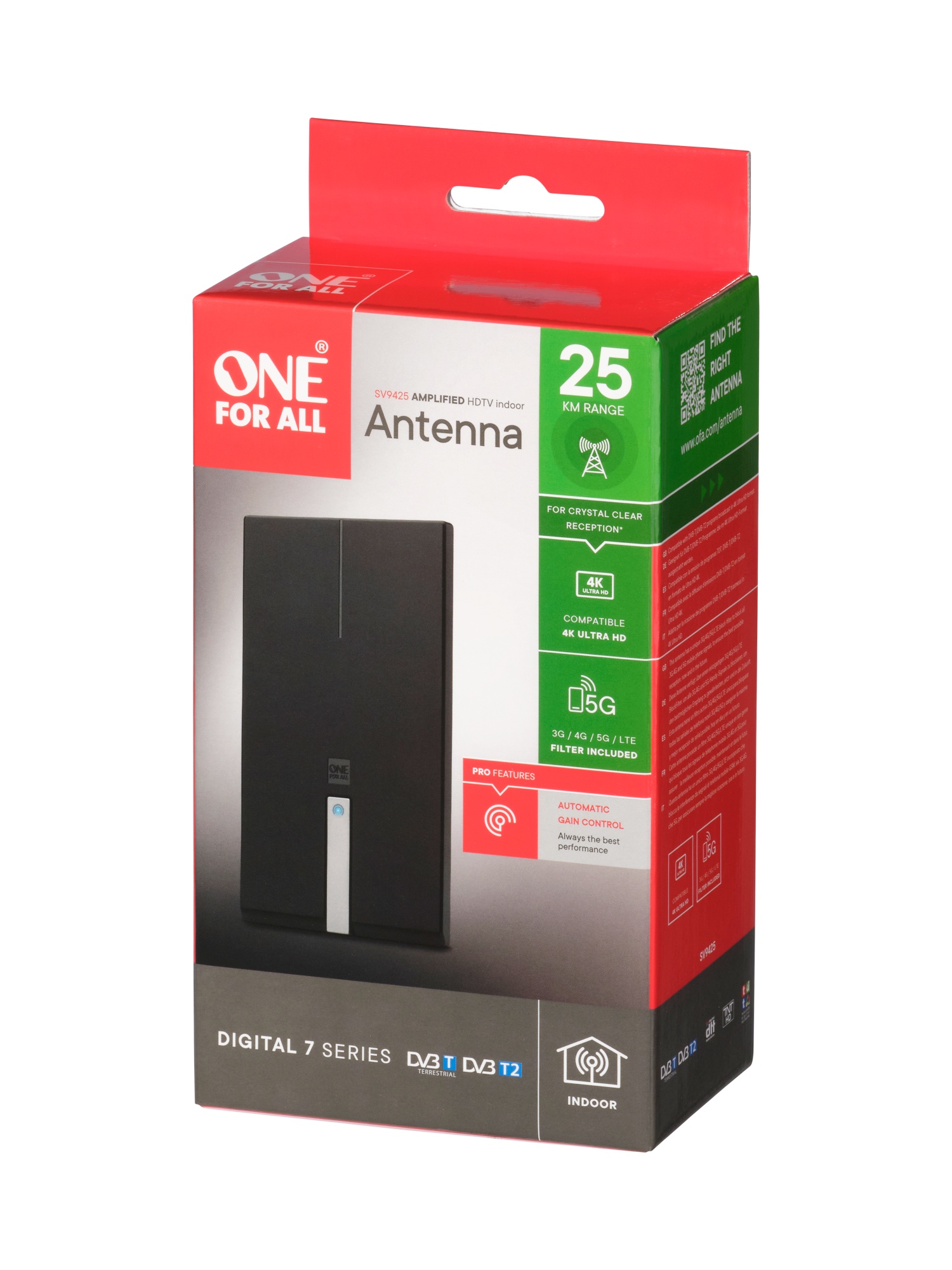Med sit flade og moderne design kan SV 9425 antennen nemt integreres i ethvert hjem. Den kan enten stå frit eller monteres diskret på væggen, hvilket giver fleksible placeringsmuligheder. Den sorte farve bidrager til et stilrent udtryk, der passer ind i de fleste interiører.