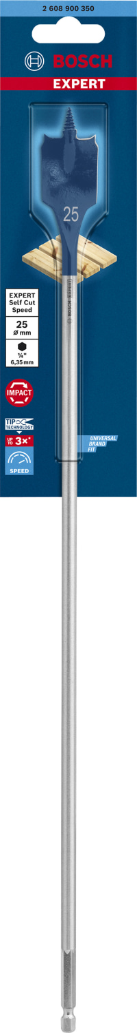 Bosch Expert SelfCut Speed fladbor er velegnet til blødt træ, spånplader og fiberplader. Det sikrer høj effektivitet og er ideelt til håndværkere, der skal bore huller eller fordybninger til kabler, dyvler og hardwareinstallationer. Sekskantet holder sikrer optimal kraftoverførsel ved brug af standardbor til tre kæber og sekskantede skruemaskinepatroner.