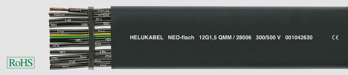 Neoprenfladkabel til kran- og elevatorinstallationer. For yderligere information henvises til datablad.