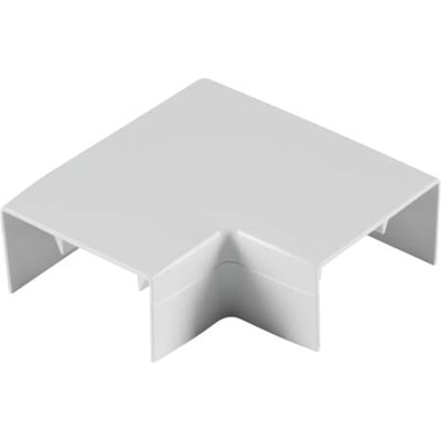Fladvinkel til installationskanal type FB 60110/LF 60111 i perlehvid. Giver en elegant lodret føring op eller ned fra den vandrette kanal. Nem at montere som en integreret del af kanalen.