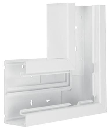 Fladvinkel til BR65130 montage. Fladvinklen monteres før kanalbundene. Samlebeslag medfølger. Måler 250 mm fra hjørne til kanalbund. Materiale: PVC, Farve: RAL 9016.