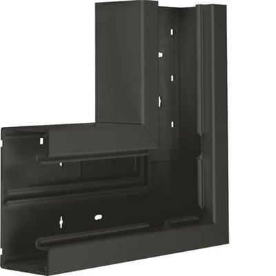 Fladvinkel i plast, der passer til BR65130. Nem montage med samlebeslag, der følger med kanalbunde. Fremstillet i PVC og farvet i RAL 9011.