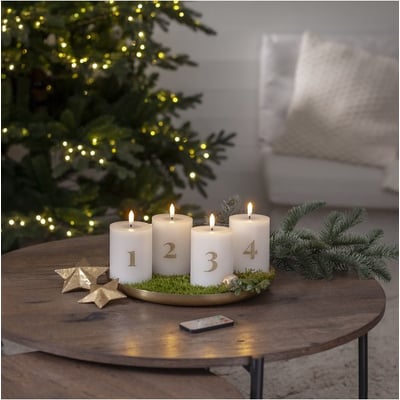 Giv dit hjem en hyggelig og autentisk julestemning med disse flamme advents bloklys fra Star Trading. Lysene er designet til indendørs brug og er lavet af voks for et realistisk udseende.