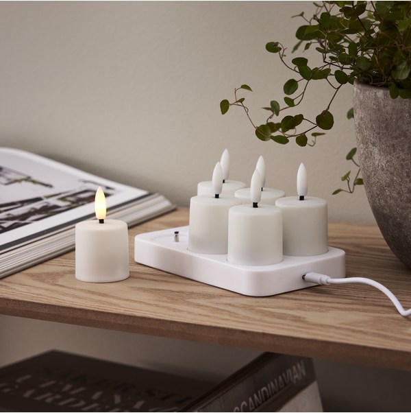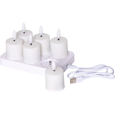 Flamme Charge oplader med 6 lys, hvid - Star Trading