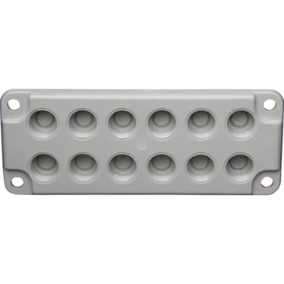 Fibox EK MODUL flange til kassebund med blanketter. Gevindflanger er forberedt til montage af forskruninger uden møtrik. Leveres inkl. montagesæt.