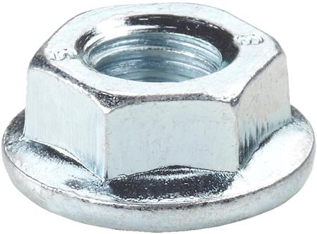 Robust M6 flangemøtrik i varmgalvaniseret stål, designet med tænder for sikker låsering uden behov for yderligere komponenter. Ideel til krævende fastgørelsesopgaver.