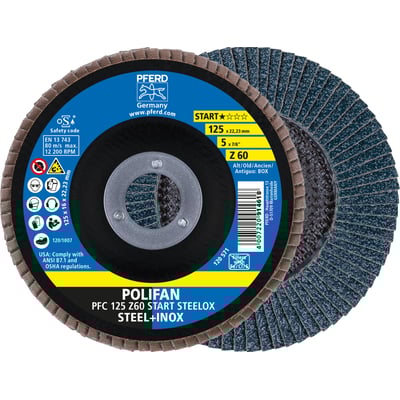 Flapdisc Polifan K60L er en robust og effektiv flapdisc, der er designet til en bred vifte af slibeopgaver. Denne flapdisc er ideel til overfladebearbejdning, fjernelse af svejsesømme og generel slibning af metal og andre materialer. Med sin K60L kornstørrelse leverer den en god balance mellem aggressiv materialefjernelse og en fin finish, hvilket gør den velegnet til både grov- og finslibning.