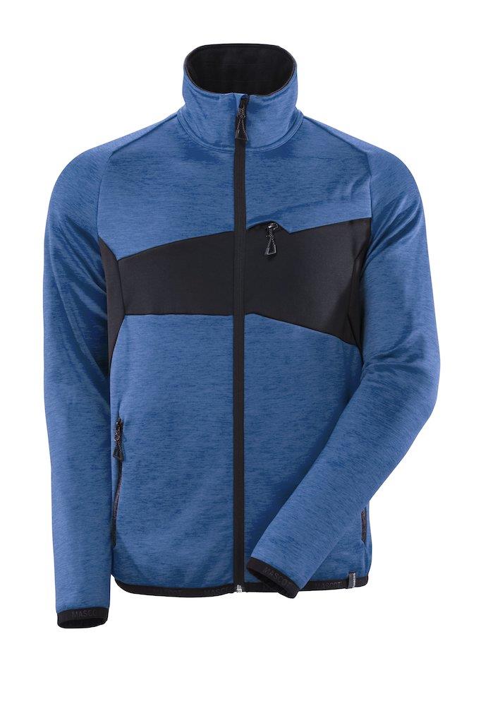 Moderne fleecetrøje med kropsnær pasform og god bevægelsesfrihed. Lynlåslukning, brystlomme og forlommer med lynlås. Elastik ved håndled og kant. Reflekseffekter.