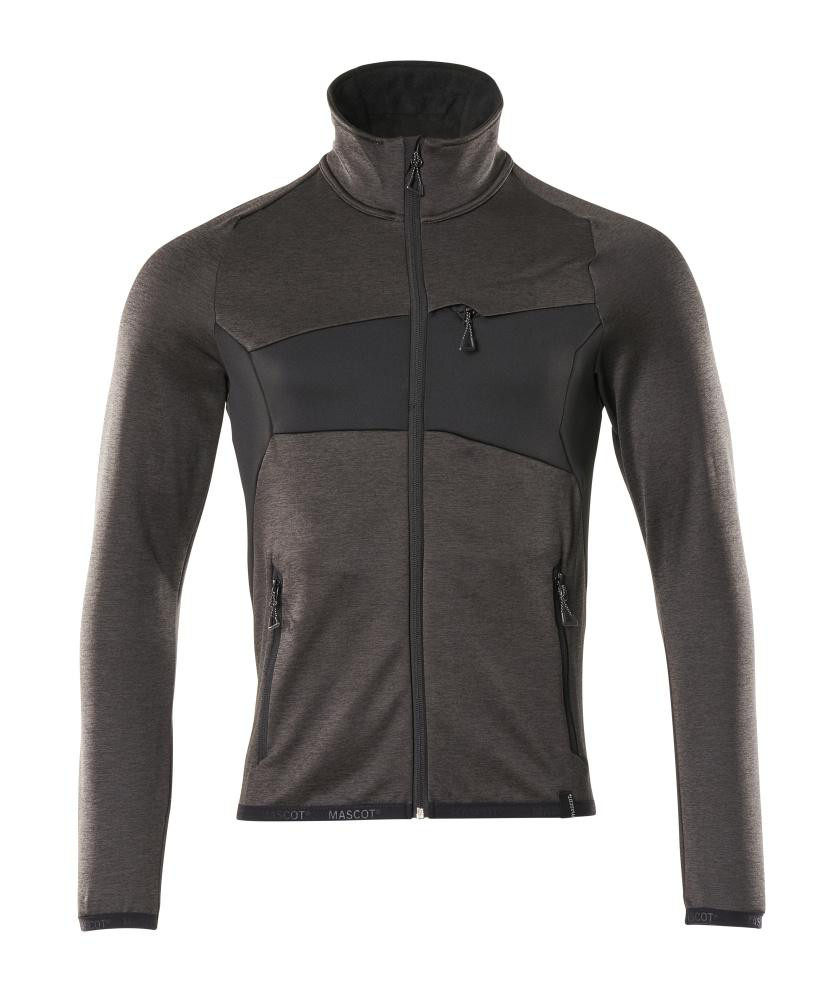Moderne fleecetrøje med kropsnær pasform og god bevægelsesfrihed. Lynlåslukning, brystlomme og forlommer med lynlås. Reflekseffekter. Kvalitet 94% polyester/6% elasthan.