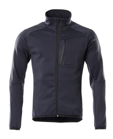 Moderne, kropsnær fleecetrøje med god bevægelsesfrihed. Lynlåslukning, vindfang, brystlomme og forlommer med lynlås. Elastik ved håndled og kant.