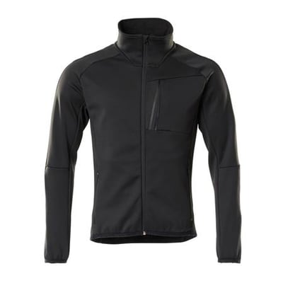 Moderne fleecetrøje i sort med kropsnær pasform og god bevægelsesfrihed. Lynlåslukning, bryst- og forlommer med lynlås.