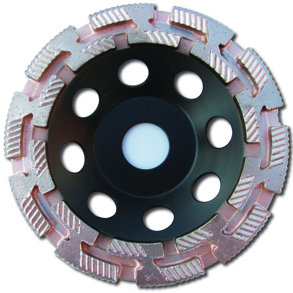 Diamantkopsten med dobbelt slibering til beton. Passer til betonslibere, gulvslibere og vinkelslibere. Ø125mm, huldiameter 22,2mm. Max 9650 omdrejninger pr. minut.