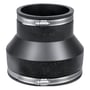 Flex-Seal kobling til samling af rør med forskellig diameter (48-56 mm og 110-122 mm) i jord. Fremstillet i gummi med spændebånd i syrefast rustfrit stål.