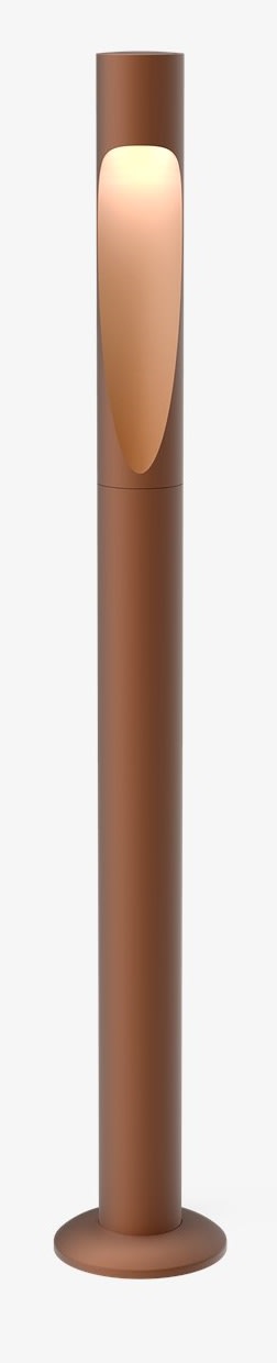 Flindt Garden lang pullert med LED-lys på 2700 Kelvin, leveres med anker og uden adapter i corten-farve. Armaturet er designet med et rundt, symmetrisk udseende og fire ringe, der reflekterer lyset i en blød, nedadgående retning. Ringene afgiver en behagelig glød, mens deres hvide underside sikrer optimal lysrefleksion og skaber et karakteristisk, symmetrisk lysmønster på jorden.