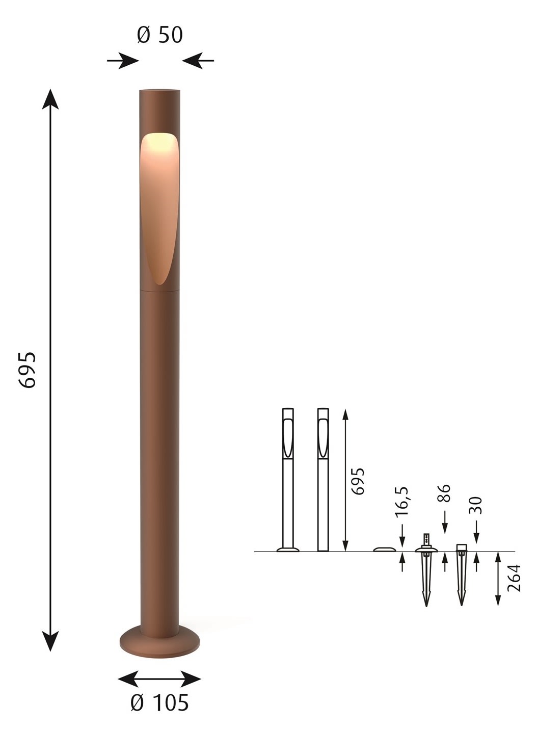 Flindt Garden pullert lang, 2700K, anker u/adapter, corten