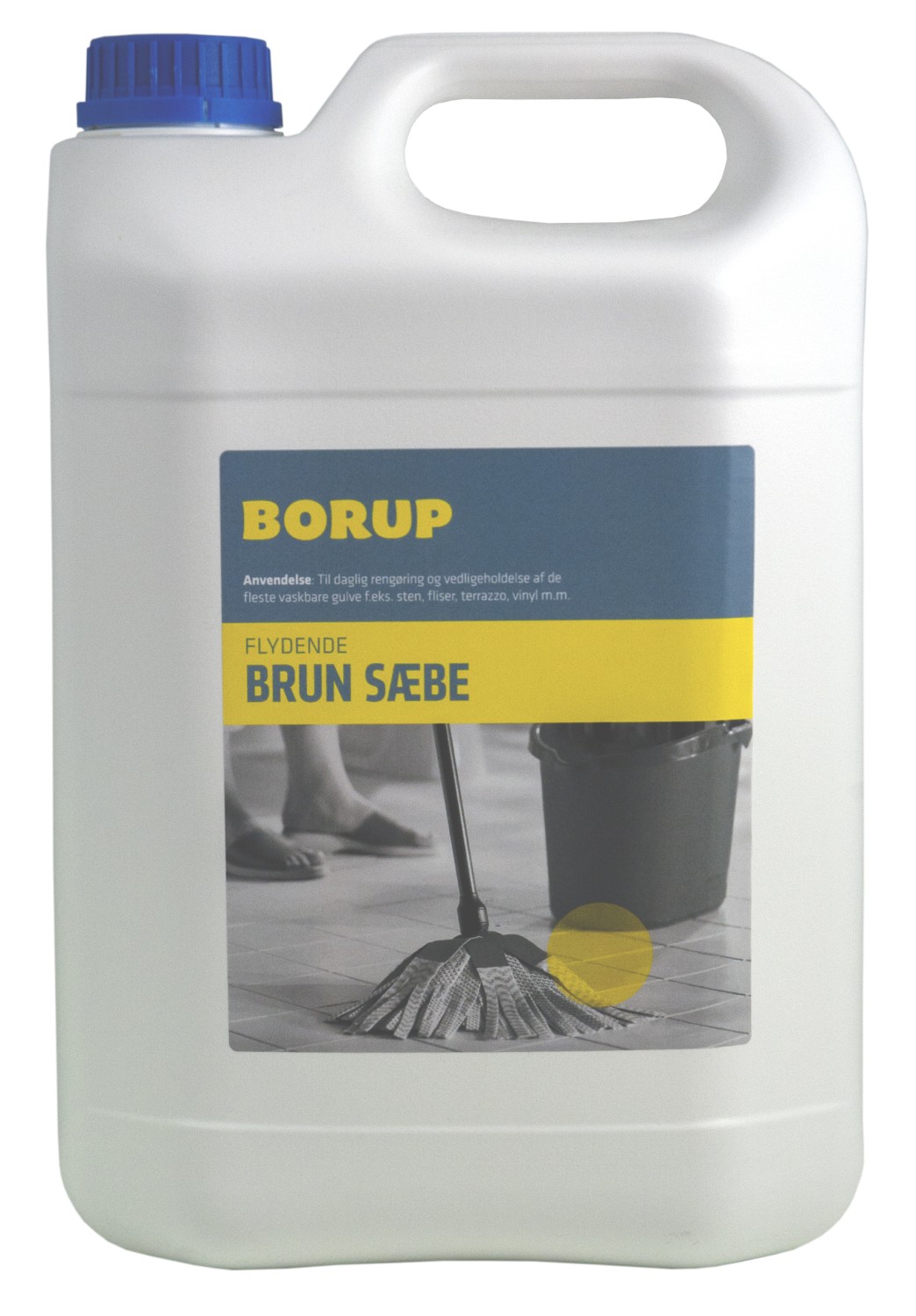 Flydende brun sæbe fra Borup Kemi til daglig rengøring af de fleste vaskebare gulve.