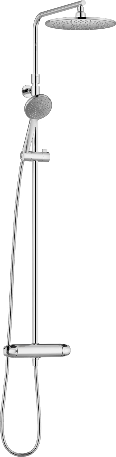 Komplet brusesystem fra FM Mattsson i krom med termostat og loftbrusesæt. Systemet er udført i messing og er blyfrit.