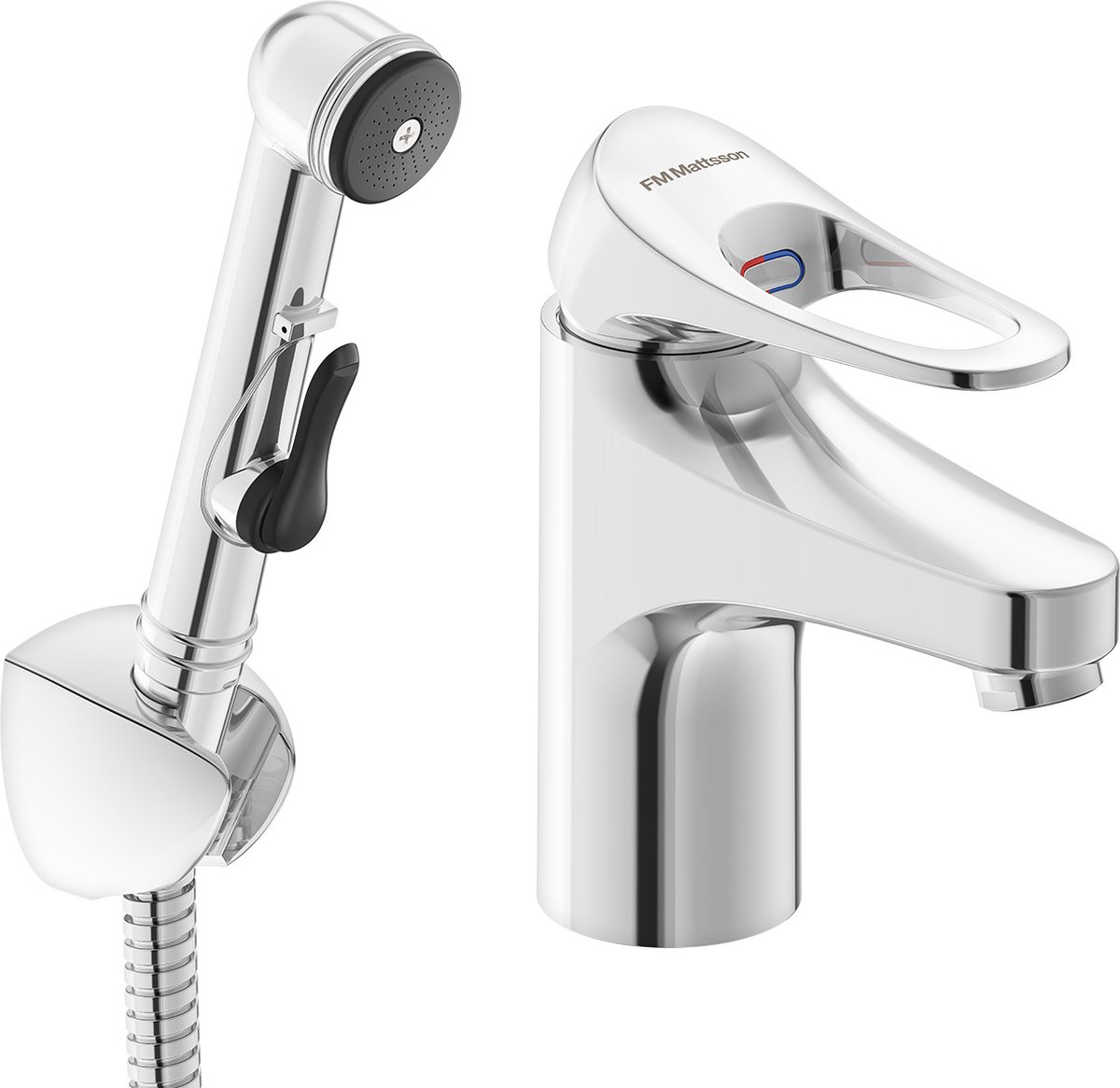 FMM 9000XE håndvaskarmatur med selvlukkende håndbruser. Med koldstart, Eco-flow og keramisk kartusche. Tilslutningsslanger: G3/8. Lydklasse 1.