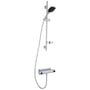 Combi bestående af sikkerhedsarmatur FMM 8380 og komplet brusesæt 8370. Brusesæt med kalkafvisende håndbruser, Eco Flow 9 l/min, 1750 mm slange, glidestang og sæbeholder.