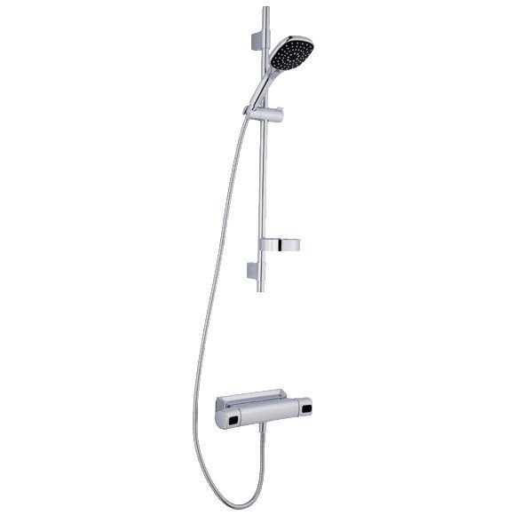 Bruserstangen er udstyret med en fleksibel vægholder inklusive membran. Sikkerhedsarmaturet er et trykbalanceret termostatarmatur fra Siljan-serien med en afstand på 150-153 c/c.
