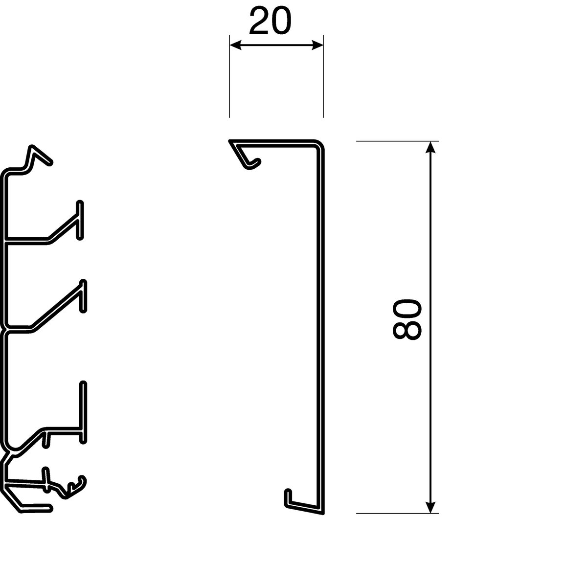 Fodlistekanal låg i aluminium, 80 mm høj. Velegnet til renovering af lejligheder, plejehjem og hoteller, hvor kabler skal skjules hurtigt og nemt.