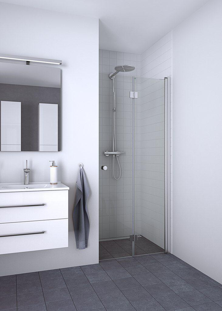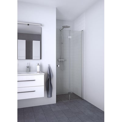 Foldedøren kan anvendes alene eller kombineres med andre døre for at skabe større brusekabiner. For en komplet hjørneløsning anbefales det at bestille 2 stk.
