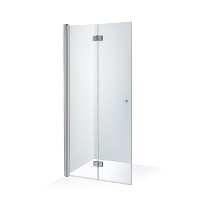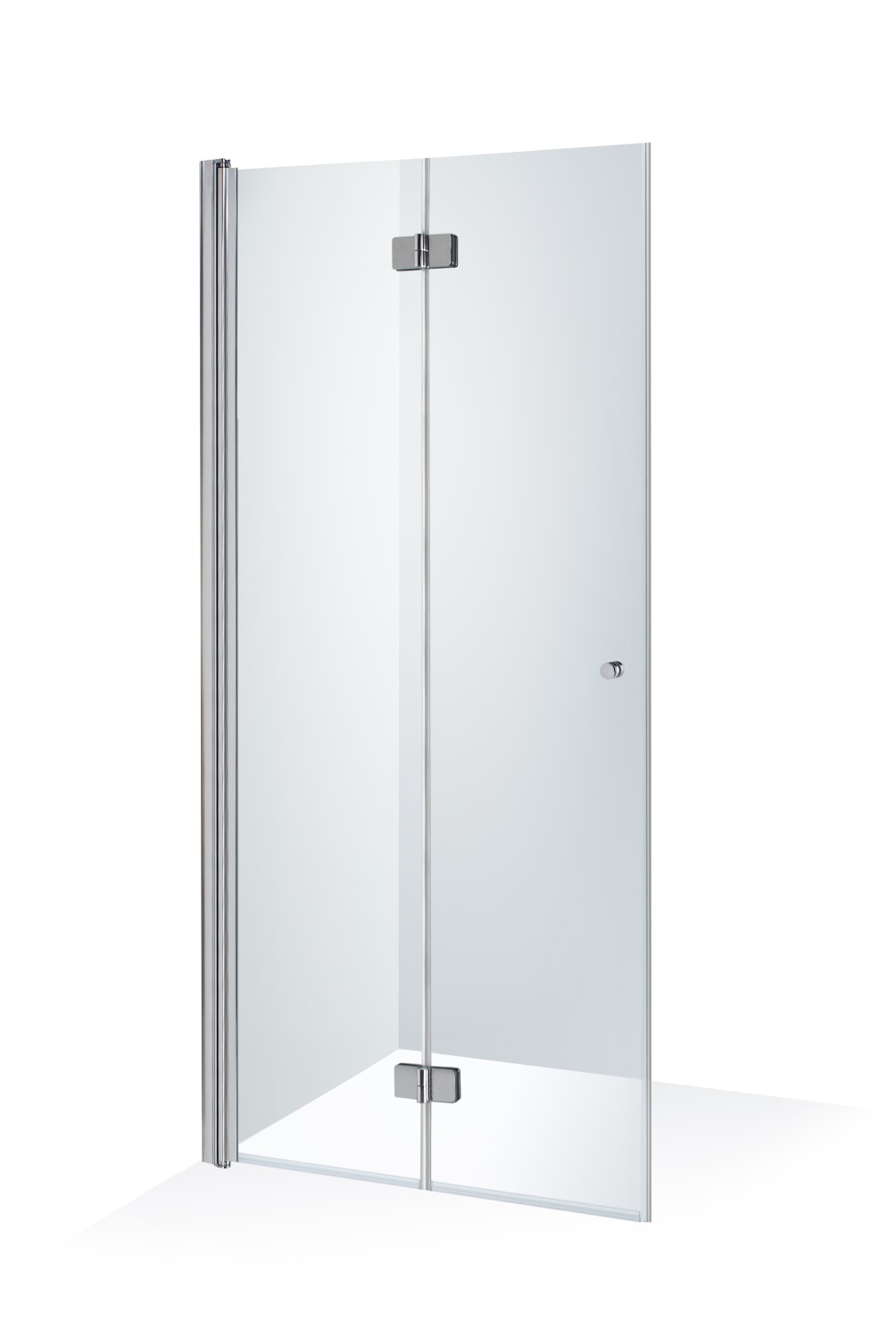 Simona foldedør med klart glas og krom profiler. Venstrevendt montering, 90x200cm. Justerbar profil.