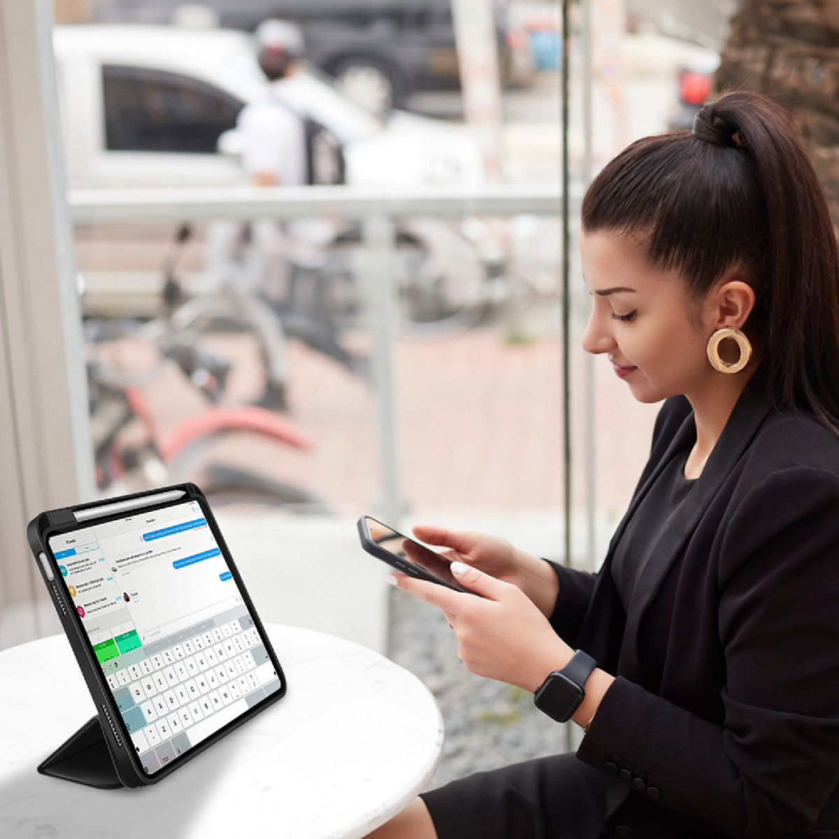 - Robust beskyttelse: Fremstillet i slidstærkt PU-læder, der beskytter din iPad mod ridser og stød i hverdagen.