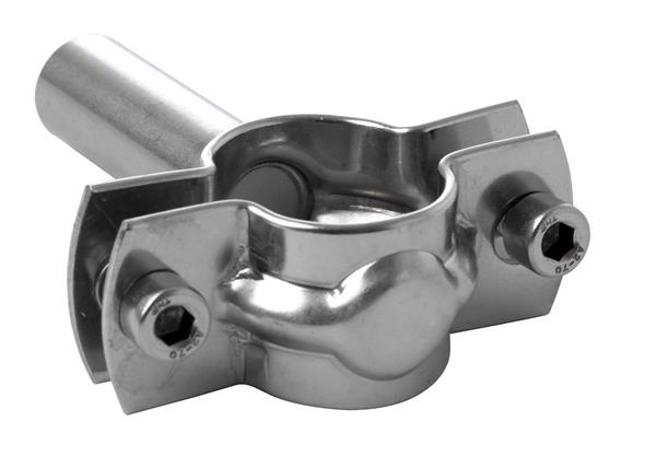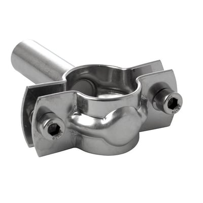 Rustfri rørholder til levnedsmiddelindustrien, med lang svejseskaft og en A-mål på 80mm. Fremstillet i AISI 304.