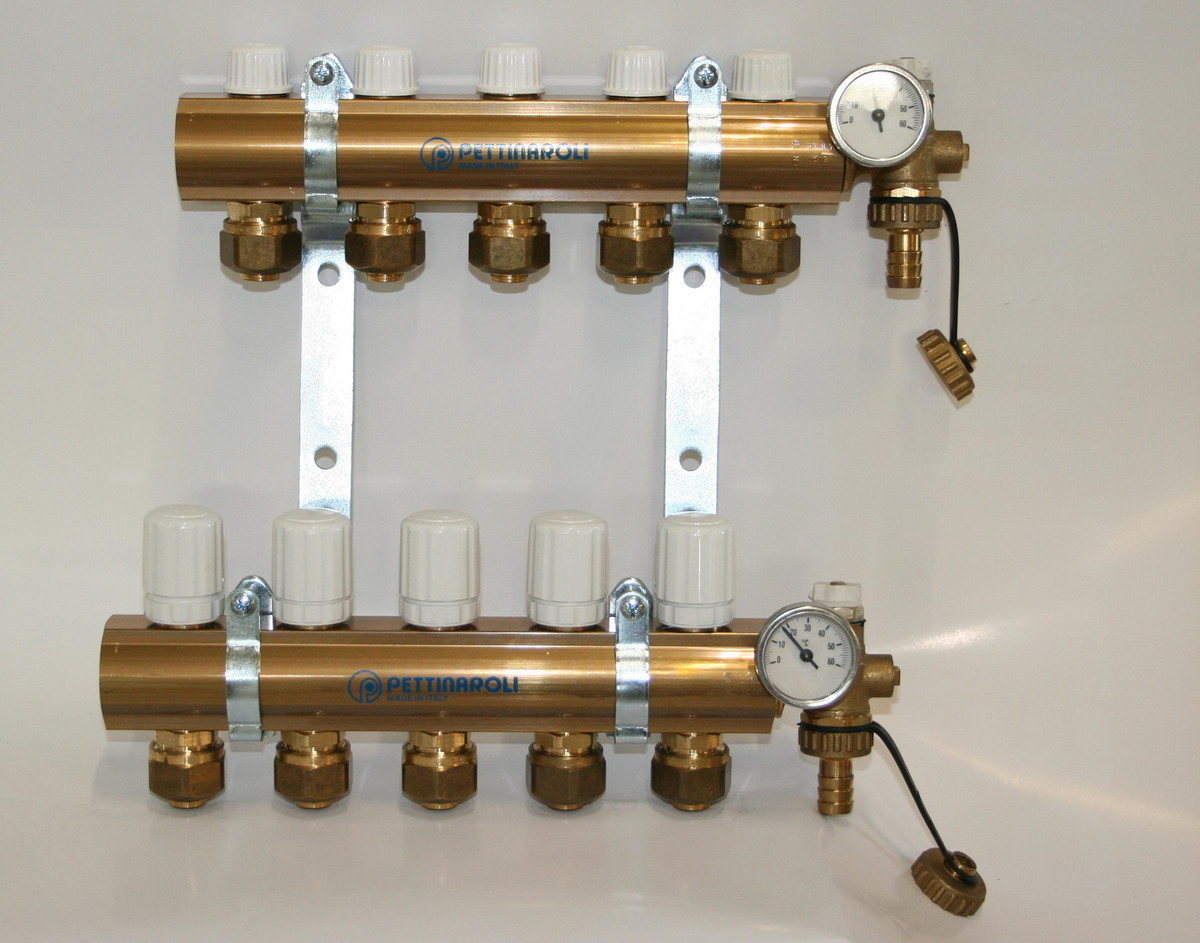 Komplet fordelersystem med 20x16 mm fittings og 2 endestykker. 5 afgreninger.