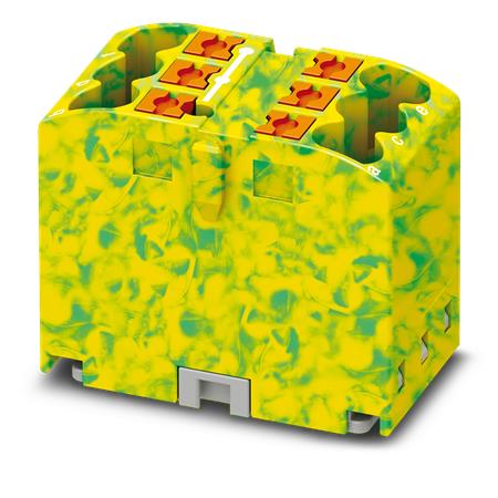 Fordelerblok med push-in tilslutning. Kan brokobles via lederskakten. Mærkespænding: 450 V, mærkestrøm: 24 A. Farve: Grøn/gul.