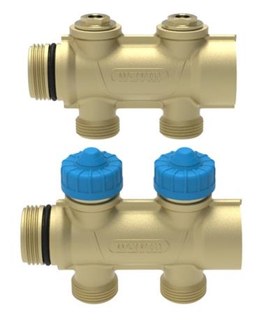 Wavin Comfia fordelerrørssæt med 2 afgreninger, 3/4" tilslutning og 20 mm udtag i messing.
