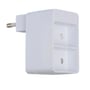 Forgreningsled uden jord børnesikker. 2 flade udtag, kan bruges i både enkel og dobbelt stikkontakt, hvid 230V 16A.