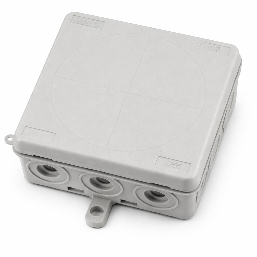 Wiska type Ka23 forgreningdåse, 86x86x41mm, Ø13mm, IP55. Ideel til udendørs brug.