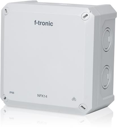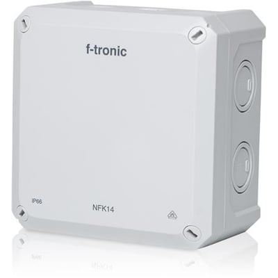 Robust forgreningsdåse (140x140x81 mm) med IP66-klassificering i grå. Moderne design, nem montering og flere indføringsmuligheder.