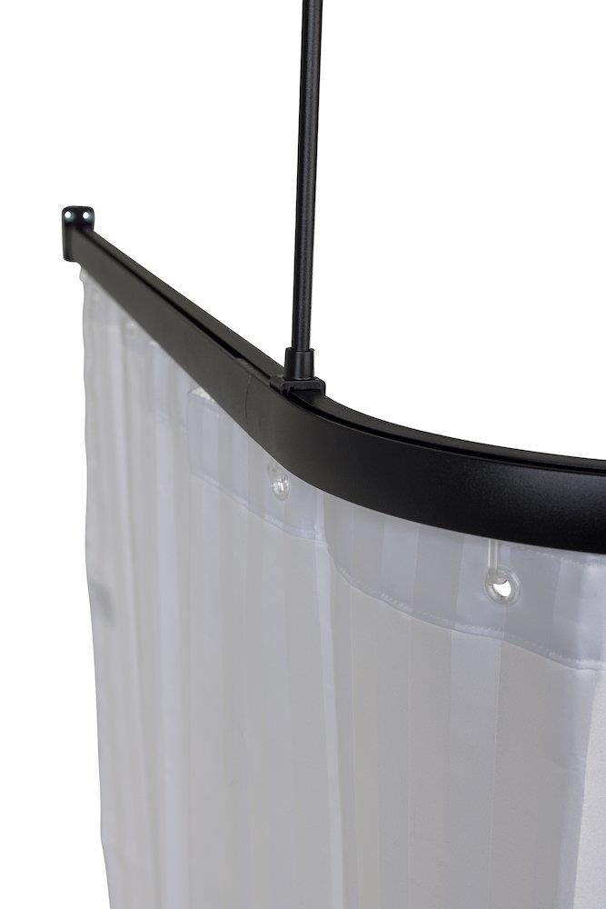 Stabil forhængsskinne med loftmontering i matsort. Fremstillet af aluminiumsprofiler og designet til bruseområder, badekar, adskillelsesrum mv. Systemet er enkelt og holdbart.