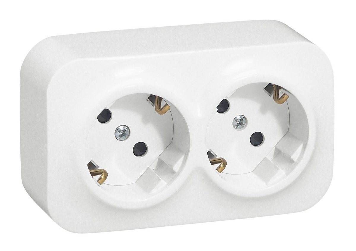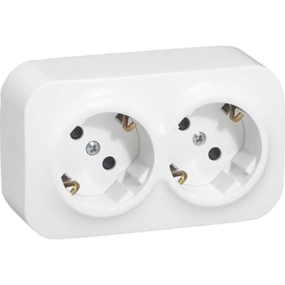 Dobbelt Forix schuko stikkontakt til indendørs brug. Stikkontakten er komplet med udvendigt underlag og kan anvendes til 2 faser. Mål: 65 x 110 x 38,50 mm.