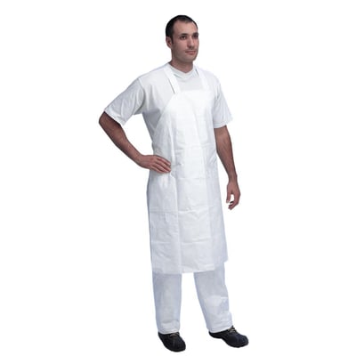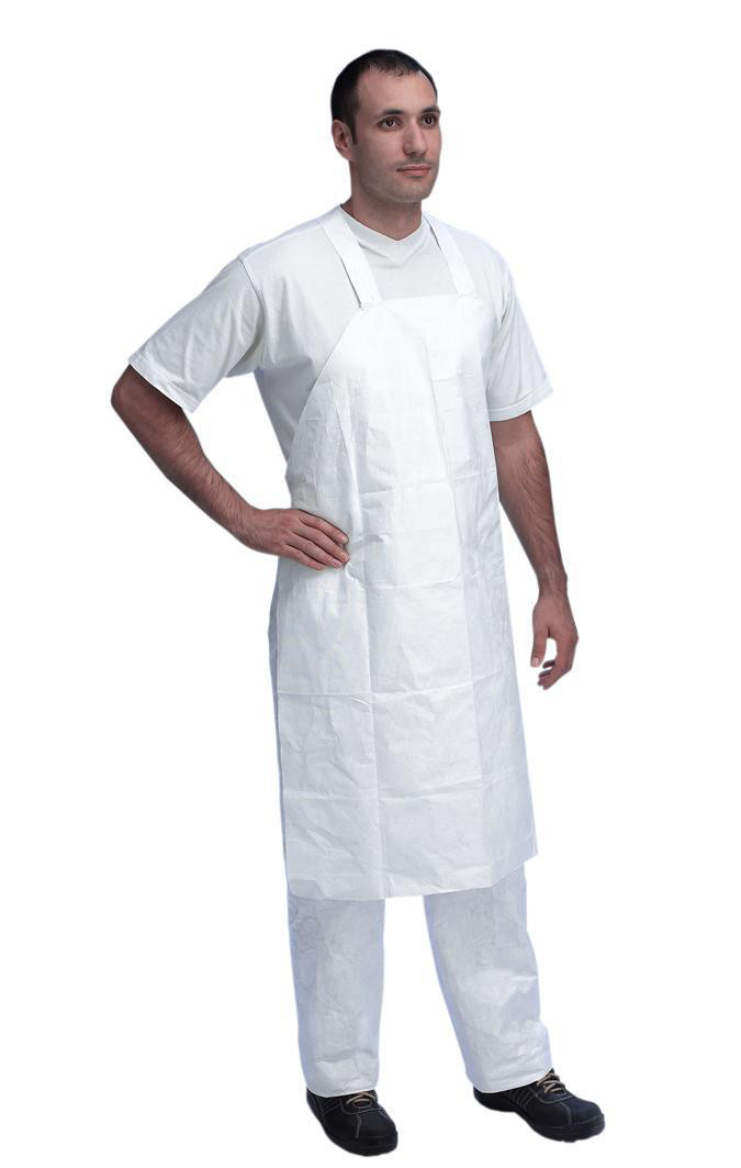 Dette forklæde er fremstillet af Tyvek 1431N, et uvævet stof af polyethylen. Materialet gør beklædningen let og stærk, ideel til brug i forskellige miljøer.