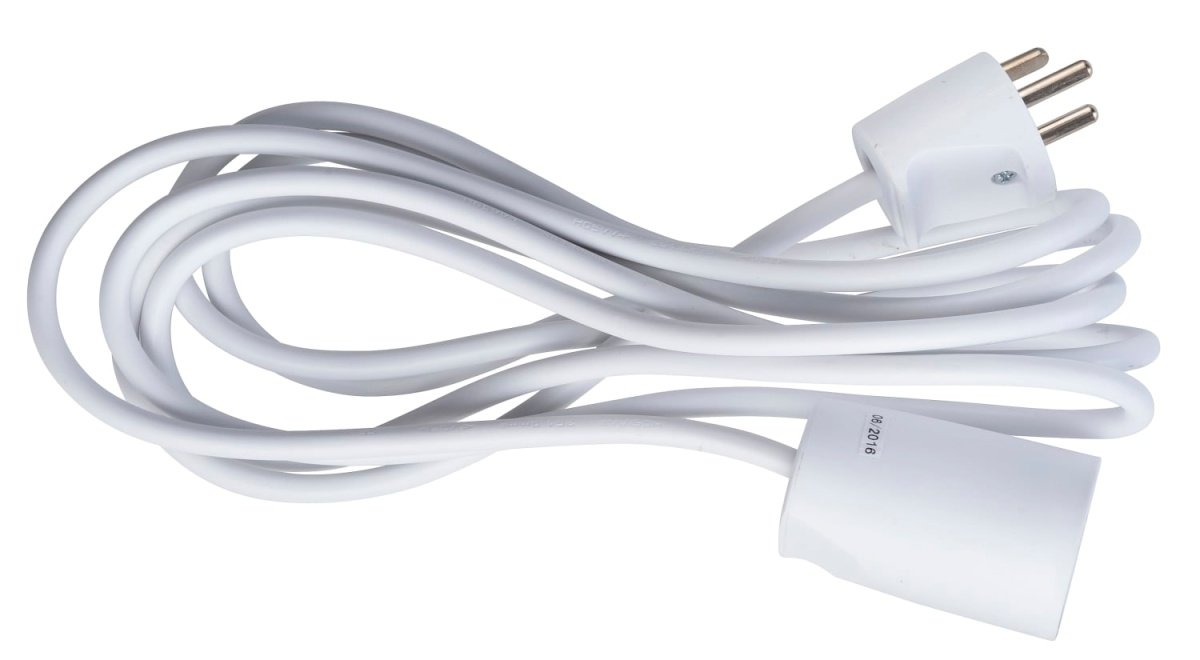 Denne forlængerledning er udstyret med jord og en 3 meter lang ledning i hvid.