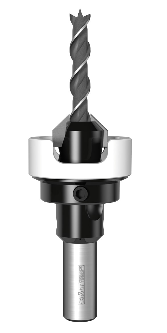 Forsænkeren leveres med et udskifteligt standard HSS bor, der er ideelt til bearbejdning af hårdt træ. Den er velegnet til brug med både boremaskiner og overfræsere.