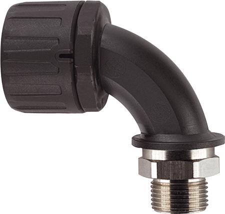 Standard forskruning IP66 med 90° bøjning, omløber og udvendigt gevind. Hurtig montage, optimal fastholdelse, modstandsdygtig overfor opløsningsmidler og olier, halogenfri.