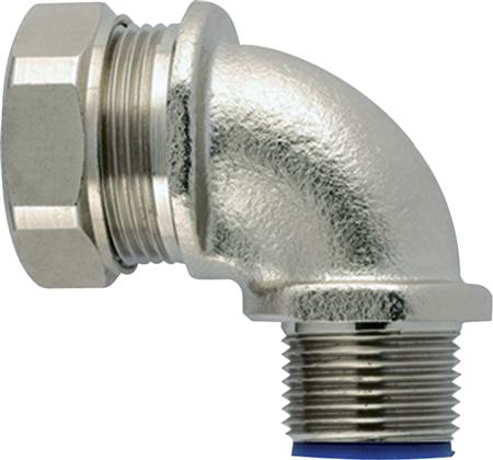 PCS-90FMC metalkonnektor i IP65 med 90° bøjning og udvendigt gevind.