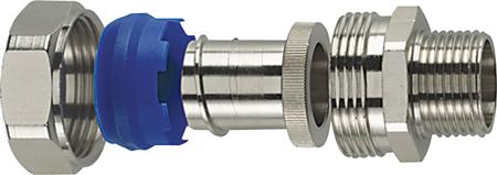 PCS-FMC metalkonnektor i IP65 med udvendigt gevind. Fastholder optimalt. Kan monteres med slangen isat forskruning.