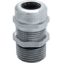Forskruning M20 fremstillet af forniklet messing med metrisk gevind, aflastningsegenskaber, helisolerende inderside, neoprenpakning og O-ring ved ydergevind.