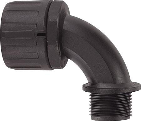 Standard IP66 forskruning med 90° vinkel og M12 gevind. Hurtig montage, optimal fastholdelse, resistent over for opløsningsmidler og olier, halogenfri.