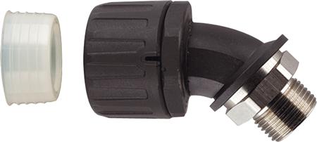 IP68 forskruning med 45° vinkel og udvendigt gevind. Hurtig montage og optimal fastholdelse. Modstandsdygtig overfor opløsningsmidler og olier. Halogenfri.