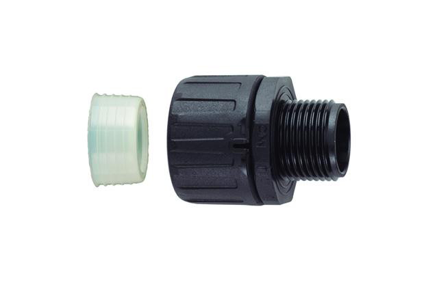 HelaGuard HGL-S forskruning i sort PA66. IP68-klassificeret og modstandsdygtig over for opløsningsmidler og olier.